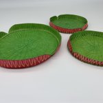 【オオオニバスのポットマット】 Victoria amazonia 大鬼蓮 アマゾン川流域に生育するスイレン科の水生植物。 2メートル以上にもなる巨大な葉が、水面にズラリと浮かんでいる光景は圧巻。 上に乗って昼寝したい。 ※ 鍋敷ではないので直火ポットや水滴のついたコップなどには使用できません。
