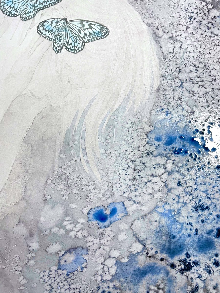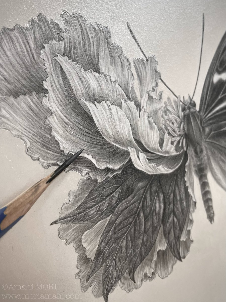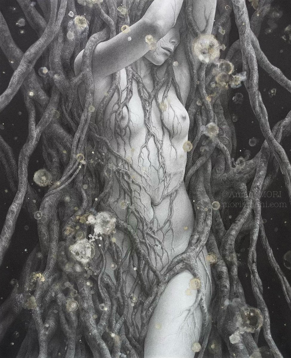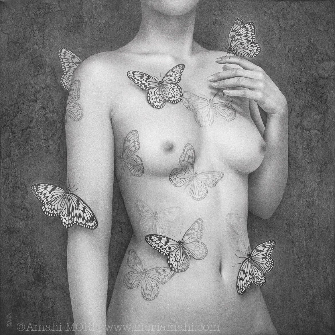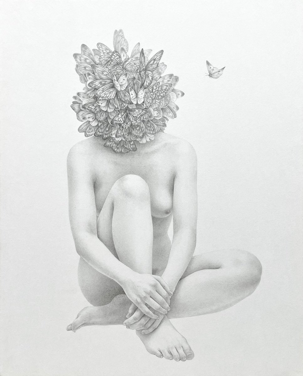 artwork 「変容を纏う」 P12 (60.6 x 45.5 cm) 鉛筆、透明水彩、ケント紙 ・ 【森 天飛 -変容-】 5月22日(月) - 28日(日) 会期中無休 11:00-19:00 / 最終日16:00迄 月光荘 画室1 gekkoso.jp 東京都中央区銀座8-7-2 B1F