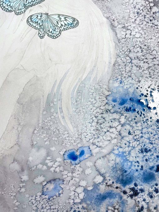 今週末からのグループ展です。 何卒よろしくお願い致します。 [INSECTS] 7.22(金)-8.6(土).2022 10:30-18:30 ※日,月休廊 ギャラリーアートもりもと artmorimoto.com/insects.html 出品作品 「胡蝶の夢」 S4号(33.3 x 33.3 cm)