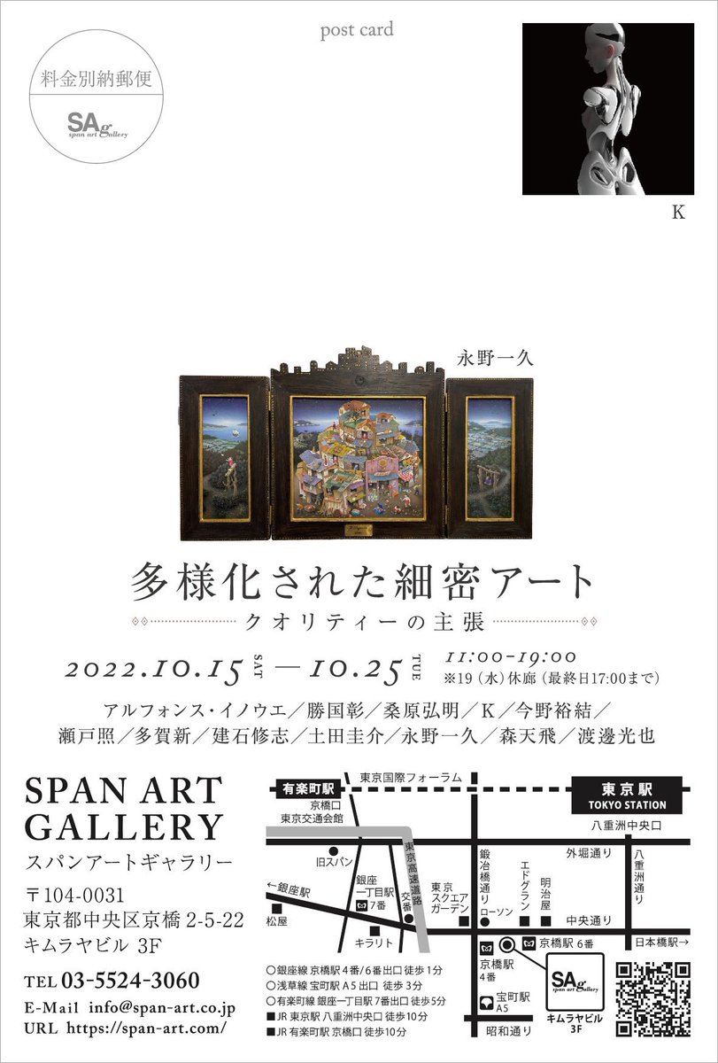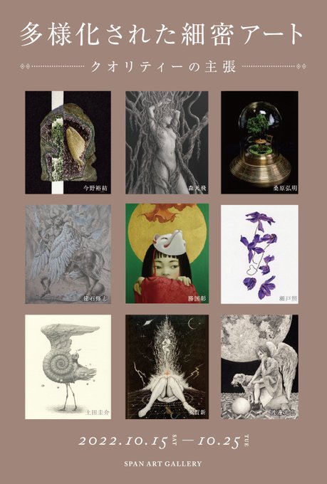 グループ展のお知らせです 【多様化された細密アート-クオリティーの主張-】 10/15(土)–10/25(火) ※10/19休廊 11時~19時(最終日~17時) スパンアートギャラリー span-art.com 1点出品いたします。 ご高覧いただければ幸いです。