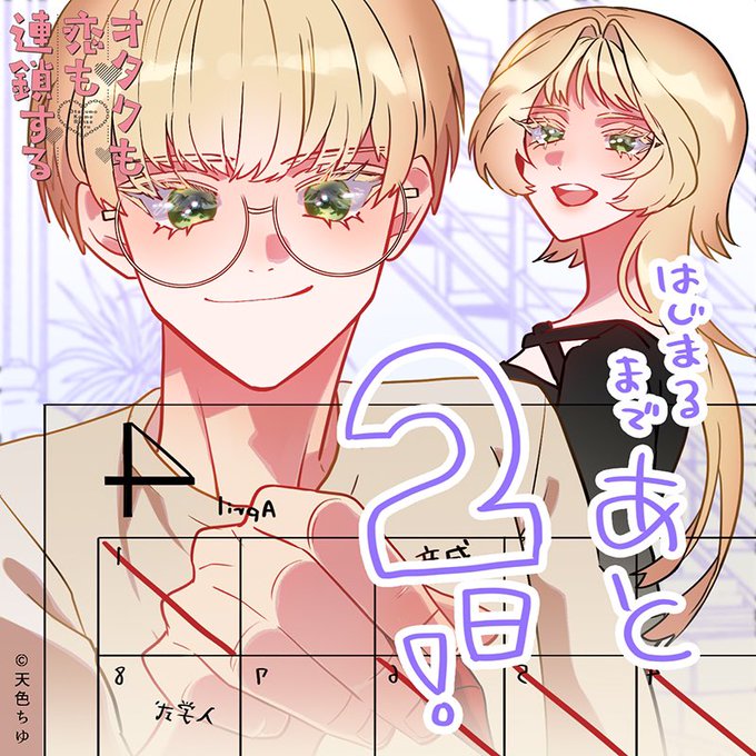 はじまるまで \\\あと1日!/// ┅ 🩵┅ 🩷┅ 💚┅ 💜┅ 『 #オタクも恋も連鎖する 』 ┅ 🩵┅ 🩷┅ 💚┅ 💜┅ #オタ連鎖 ガンガンpixivにて連載開始します〜!正午更新かな…? よろしくお願い申し上げます! twitter.com/amairo_chu/sta…