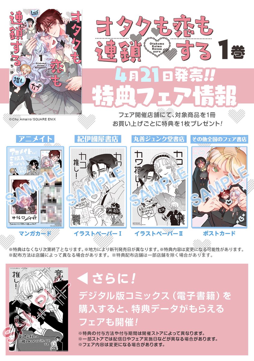 ┅🩵┅🩷┅💚┅💜┅ #オタクも恋も連鎖する ┅🩵┅🩷┅💚┅💜┅ 📱ガンガンpixivにて連載中! comic.pixiv.net/works/9224 📖単行本第1巻は《4/21》発売 アニメイト animate-onlineshop.jp/pn/pd/2226324/ 紀伊国屋 store.kinokuniya.co.jp/event/16769440… 丸善ジュンク堂 🔗後日 特典類は画像参照🙇♂️