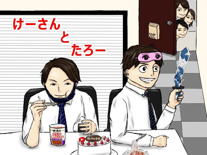 大好きなけーさんとたろーさんが40万人登録突破と言うことで記念に😊🎉 ワンピースネタが多いので絵柄ワンピース風にして裏方さんも描いたけどメンツあってるのか?笑 せっかくだし能力つけてみたけどお二人はどの悪魔の実食べたかわかります?🤔 #けーさんとたろー #イラスト #おめでとう