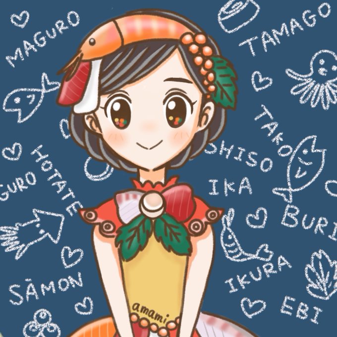 7 34 海鮮丼ちゃん🍣 お腹は卵焼きのつもりです🥚 卵の模様描いたら、娘に ちょっとねぇ〜〜!びみょうよ!と言われたのでやめました😂 #イラスト #擬人化 23/07/08 10:21