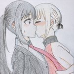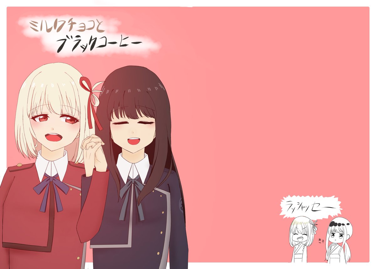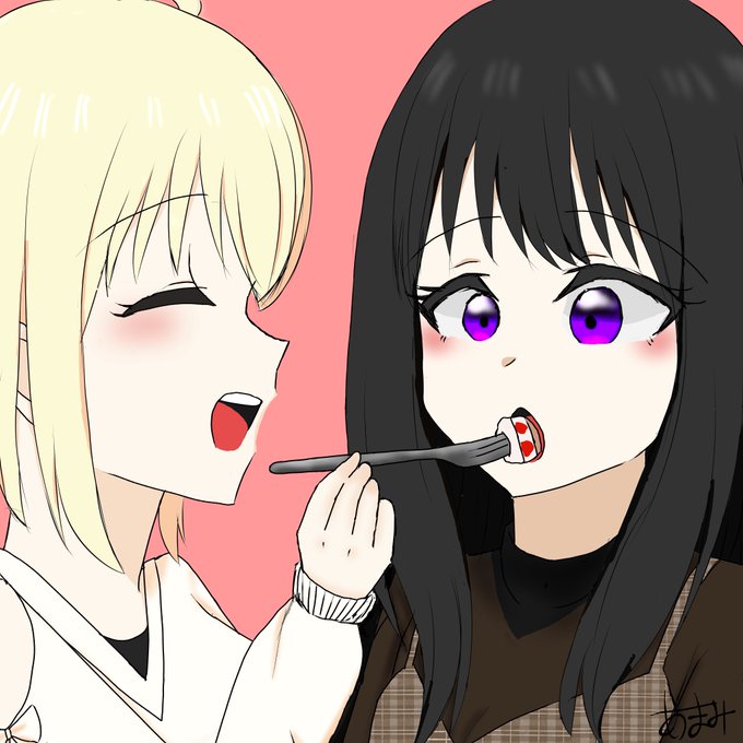ポップアップストアの描き下ろしがものすごく可愛いので、ケーキあーんするちさたきを描きました🫶 #リコリス・リコイル #リコリコ #ちさたき