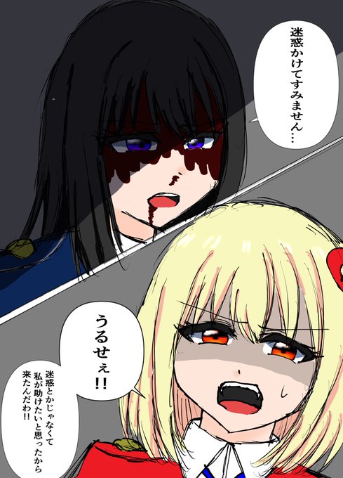20 79 めちゃくちゃ雑な落書き スペースで生まれた「井ノ上のピンチに駆けつける錦木」です たきなは「千束の手を煩わせてしまった」ということしか頭に無くて、千束は「いつもそばにいるはずのたきなが、突然いなくなってしまう」という恐怖と不安と焦燥に駆られてる。そんな絵です 22/12/04 03:44