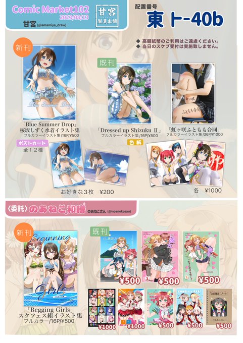 のあねこさんの新刊にこちらのよしまるびぃを寄稿させて頂きました! 全然Aqours描けていなかったのでとても新鮮な気持ちでした! 当日はスペースで売り子してこちらのイラストの色紙も頒布しますのでよろしくお願いします☺️✨ twitter.com/noanekosan/sta…