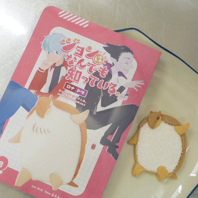 ねんさんのモフモフ本を頂きました! 予想以上に触り心地が良い……!あと角丸がすごく可愛いです。 そしてモフモフにインスピレーションを受けた◯クッキー🍪 お腹の毛はココナッツです。 twitter.com/ne94ne/status/…