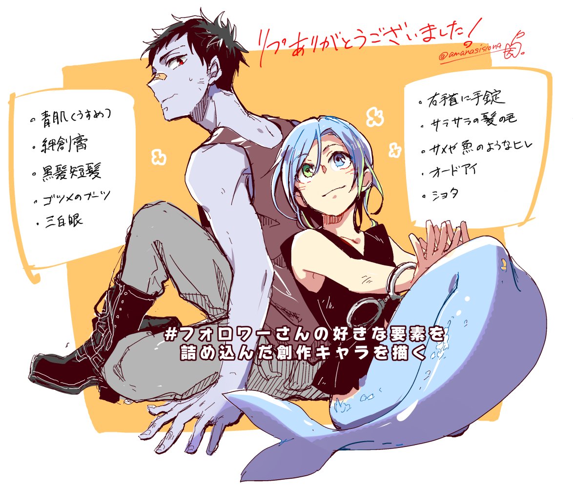 #フォロワーさんの好きな要素を詰め込んだ創作キャラを描く 2人に分けて描かせてもらいました~! いただいたものを活かせたのかどうか(苦笑) 脳内で設定とか色々考えたりもして楽しかった!!
