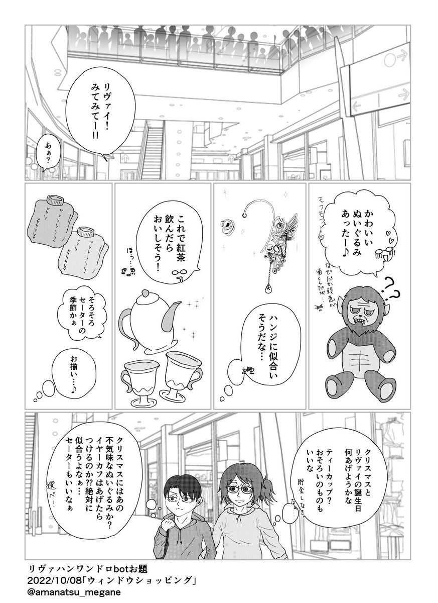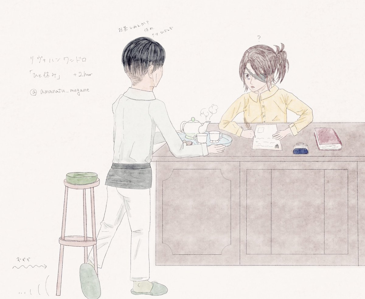 #リヴァハンワンドロbotお題 「記念日」 事前+40min 初めてのワンドロと似た構図だ… ワンドロ1周年おめでとうございます🎉毎週楽しませてもらっています🥳 これからもよろしくお願いします!