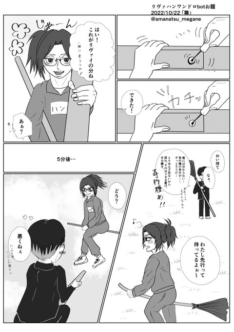 #リヴァハンワンドロbotお題 ハンジさんが作った空飛ぶ箒の安全性を心配してたリヴァイが、箒に乗って箒で飛ぶハンジさん見て可愛い♡天使♡ってなる話です何これ…😇消すかもしれないです…(-人-)💦 (事前作成1hオーバー)