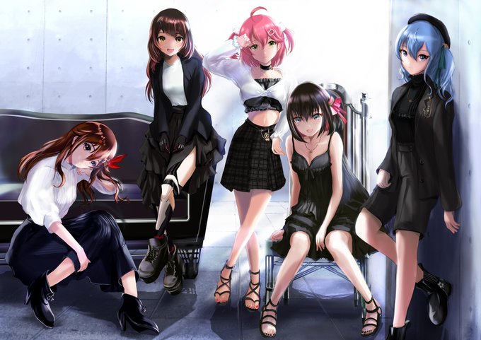 0期生全員描きました。うれしい 一枚の中に3人以上描いたのはじめてです。 #ほしまちぎゃらりー #miko_Art #soraArt #AZKiART #ロボ子Art