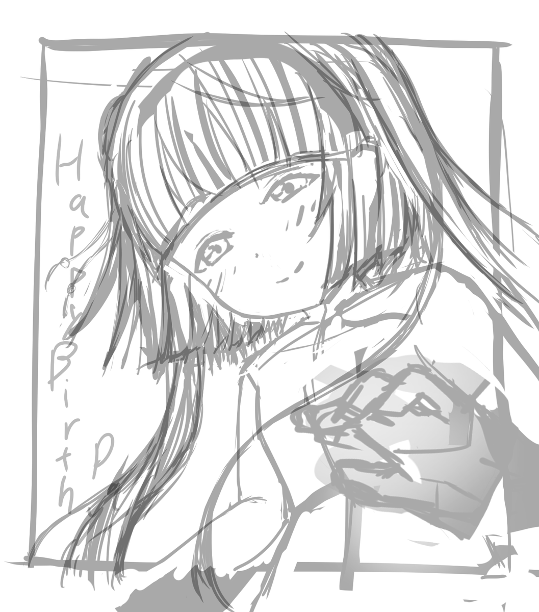 よしのん誕生日絵ラフ なんかこんな感じのエモいやつ描きたい😌 (誕生日なのにひざまくら構図という欲が出てる)