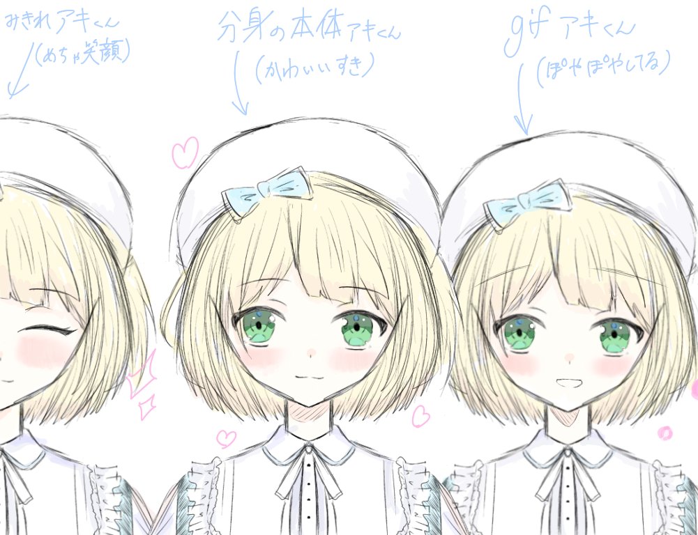 ✵−−−− アキくんの配信で好きなとこ落書きですが…!アキネコは夏服喜んでるよ…! どれもかわいかった…💭🤍 −−−−✵ 🐈🎀#アキくんちゃんアート 🎀🐈