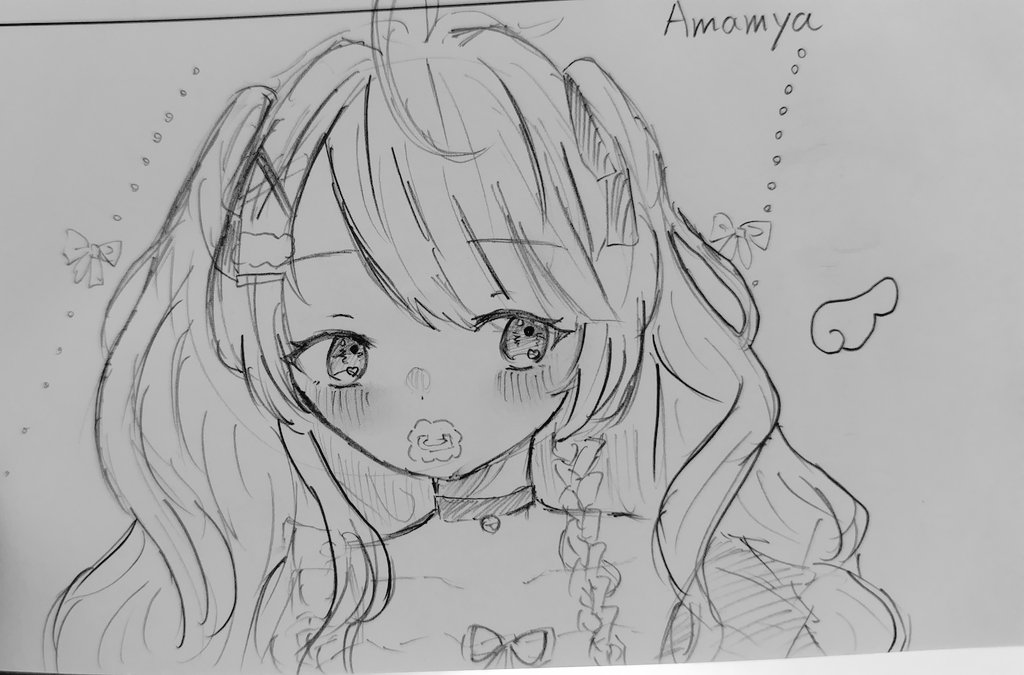 あまみゃ落書き 髪の毛変なとこから生えてる(死) #絵こころ