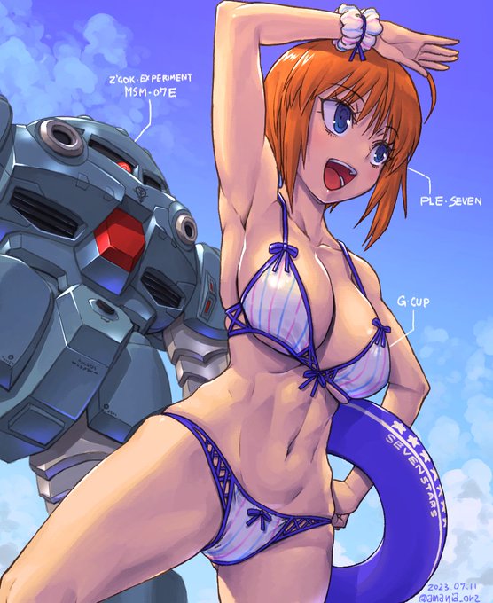 1484 6208 【お絵かき】こちらも毎年恒例になりつつある、プルセブンちゃんの水着を描きました。今年はズゴックEが海のお供 23/07/11 15:47