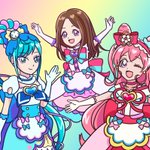 友達の娘のために描いたプリキュア、塗りも終わったー 1人ごとの色数思ったよりは少ない。 #イラスト #プリキュア #デリシャスパーティプリキュア