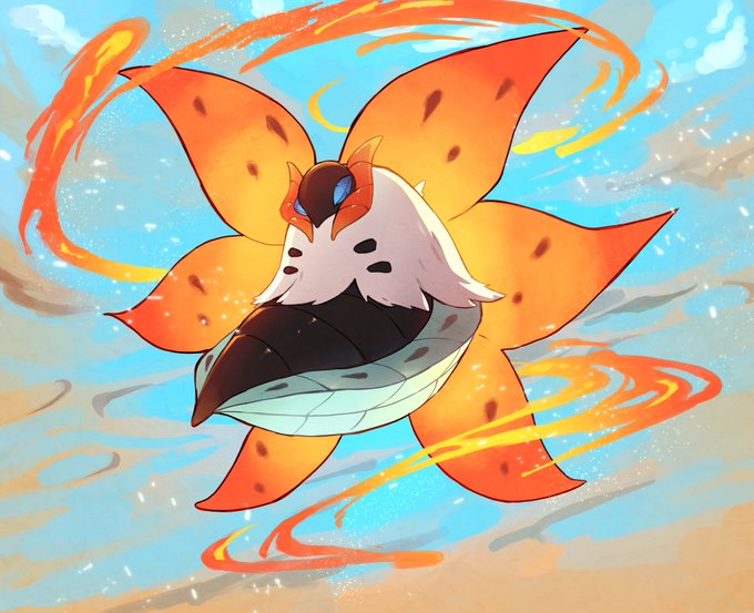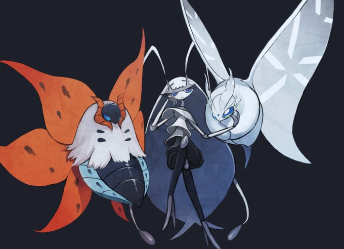 日付変わらないうちに〜! ウルガモス とモスノウ! #PokemonDay #ポケモン24周年