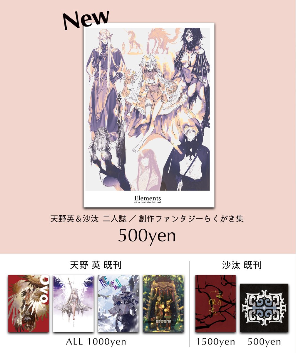 コミックマーケット99 12/31(金)【九佳句と末黒野】(ぬ-36b)で参加します。 新刊は沙汰さん(twitter.com/sata3)とのファンタジーイラストの合同ラフ本になります。他、両名のミニ色紙イラストや創作既刊を頒布予定です。 どうぞよろしくお願いします~! #C99