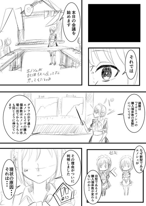 エノシュがプログラム故にイヴに売り上げで勝とうとする漫画です(エノシュポンコツ化してます)