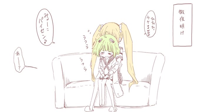 なんか思いのほかえみみゃー好評だったので、夜更かしどころか徹夜したみゃーこ先輩がえみりの膝の上でうとうとする漫画を描きました(*´з`) #マギレコ #まどマギ版真剣深夜の創作60分一本勝負 #えみみゃー #百合