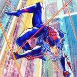 it's @KawaiiMamimi birthday so i did her very cool spiderman oc callie with miguel- mr hot and grumpy spiderman 2099 having a meeting ;) happy birthday!!!