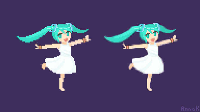 アンチエイリアスの有無で印象はけっこう変わるよ~! っていう比較 どっちがいいと感じるかは好みと宗教の問題だと思う #Pixelart #ドット絵