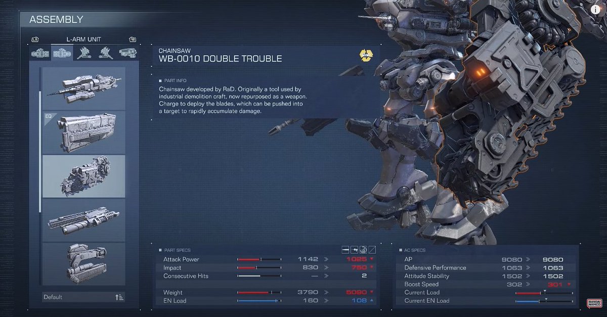 AC6ではこんな感じの尖ってるけど角面構成の軽2脚と中2脚の間くらいのデザインあるといいな!