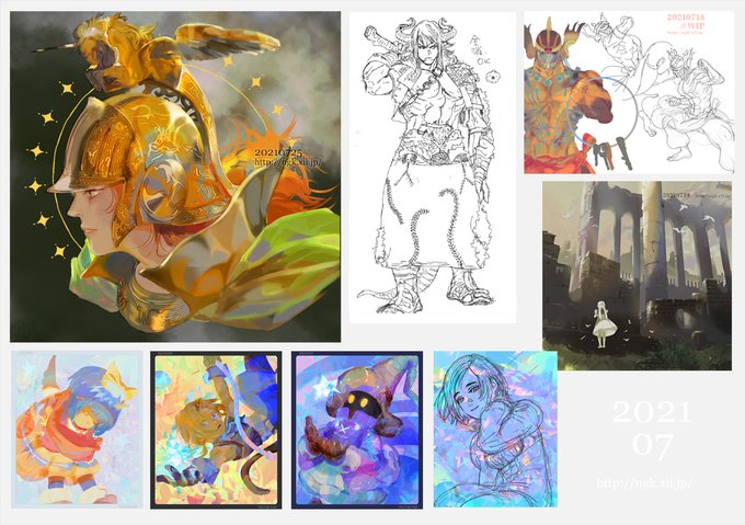 7 31 #今月描いた絵を晒そう 7月はこんな感じ FF9のは全員分ラフ描いたけど全然進んでない 21/07/31 23:53
