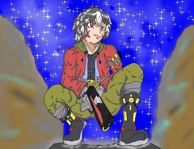 さあ!いこうかー #青年 #星空 #イラスト #バトル pixiv.net/artworks/99235…