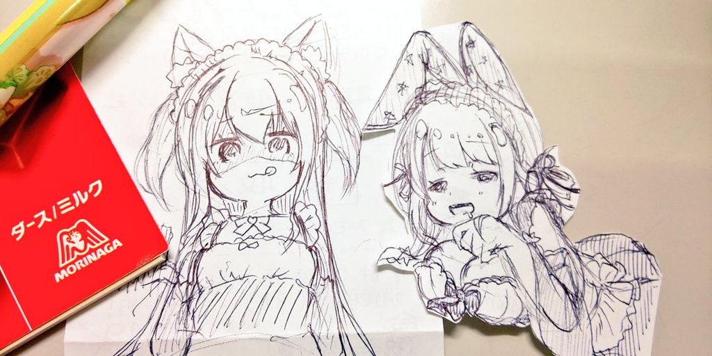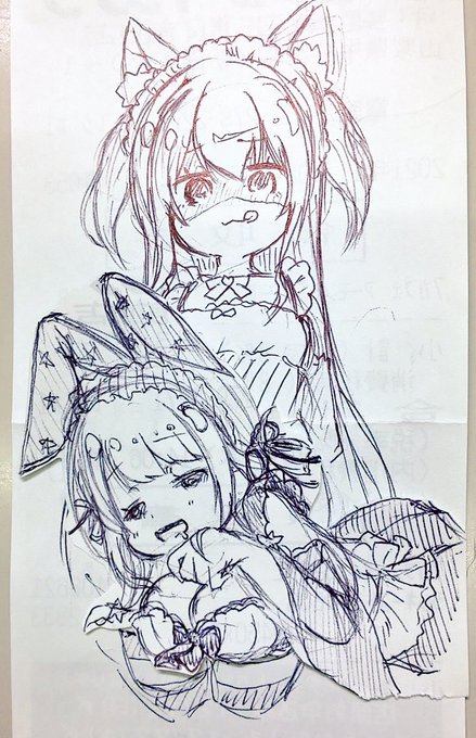 ぺぺ様ッすぴ様ッ 出遅れましたァァ膝枕ですゥゥ 色々違ってて申し訳ないです (例によってレシート裏ですが) (画力なくて別々ですが) #星乃美術館 #ぺぺろのまたたび