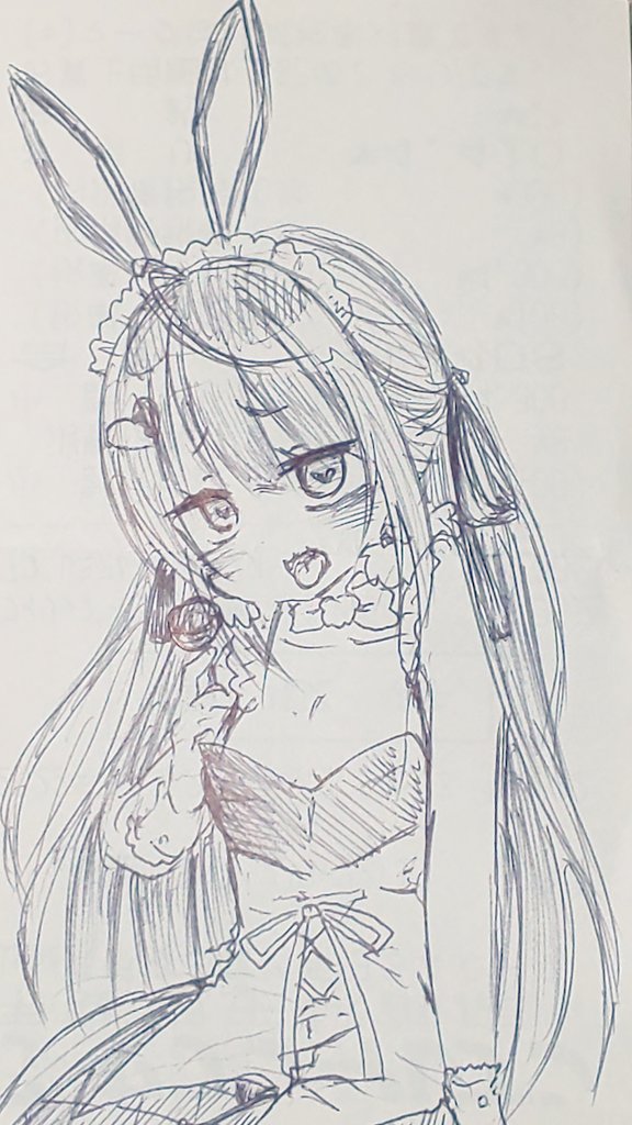 13 45 初描きえびちゃ🍤💟いやぁバニーっていいよなぁ…かわいい✨(例によってレシート裏💦)(混雑してる場所は心の目で見て下さい←) #えびすけっち #恵比寿とうか 22/08/26 03:05