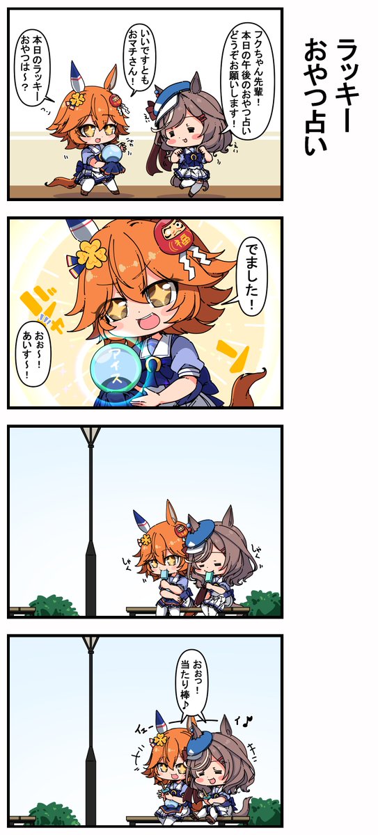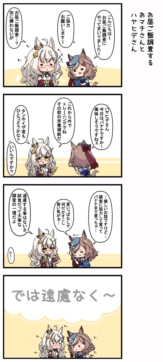 お昼ご飯調査するおマチさんとハヤヒデさん
