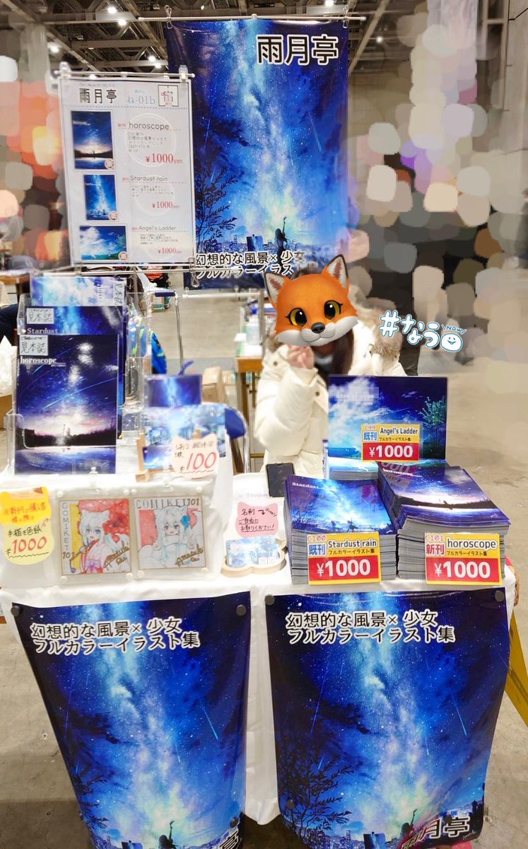 おはようございます、少し早いですが設営完了しました🌌✨ スペースが西館入口前で人の流れ見放題で、懐かしい賑わいを感じて嬉しいです🥰 来られる方よろしくお願いします〜🌌✨ #C101 twitter.com/amatukirei/sta…