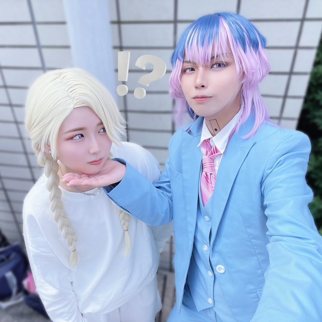 2 2 ※コス 昨日のインテお疲れ様でした〜❕ 冬インテぶりのこすぷれでしたが楽しかった〜😂✌️💕 ウィッグはちはやさんにお借りしましたありがとう🫶 この組み合わせだったのは、サークル主の”癖(ヘキ)”です…👊笑 13歳蘭:あまわ 梵天竜胆:ちはやさん 23/05/29 21:33