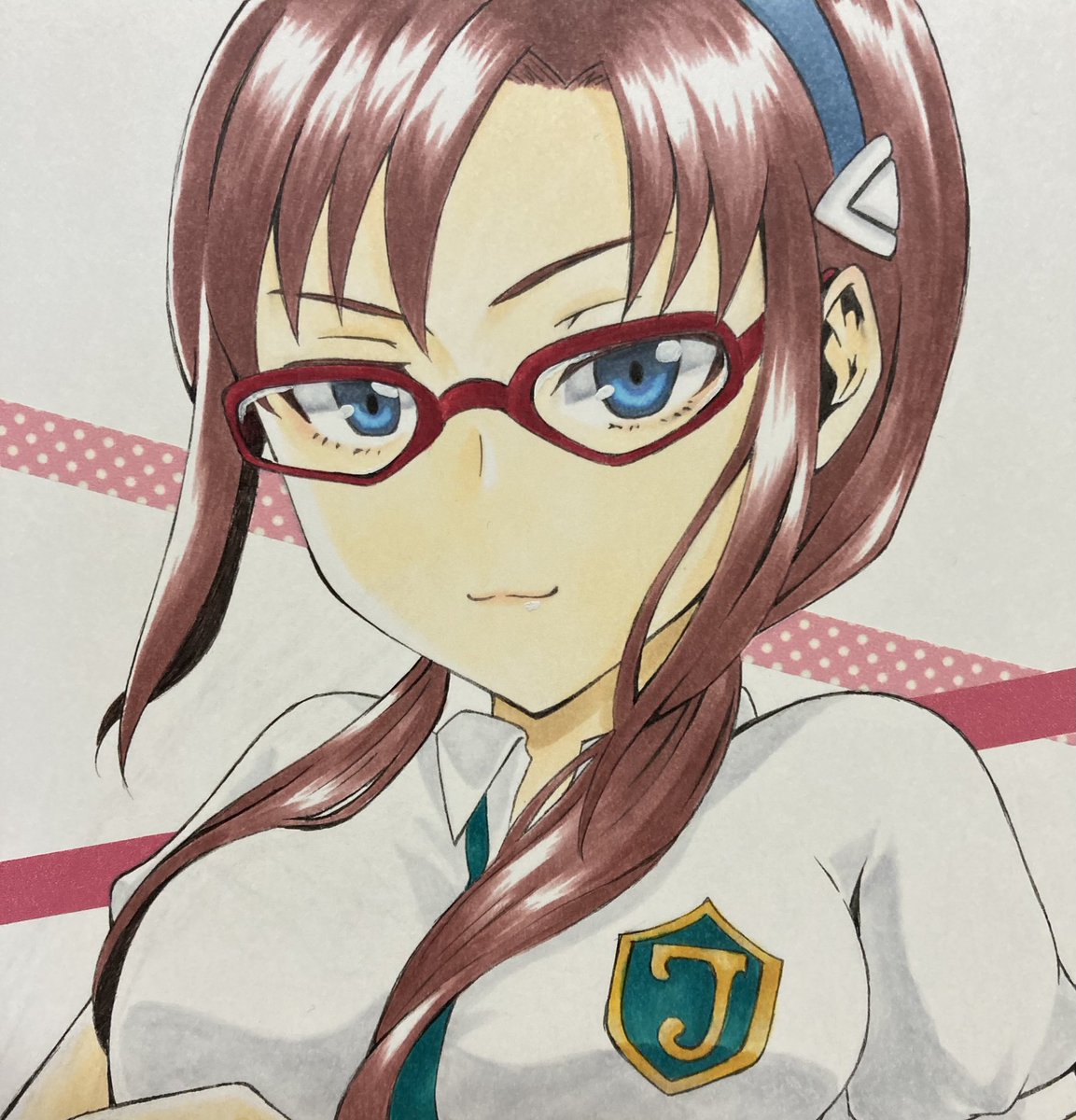 #お題交換ドロ部 第15回お題「エヴァンゲリオンのキャラ」ということで、マリさん描きました。初描き!そして久々のアナログ! 右は無修正verです。