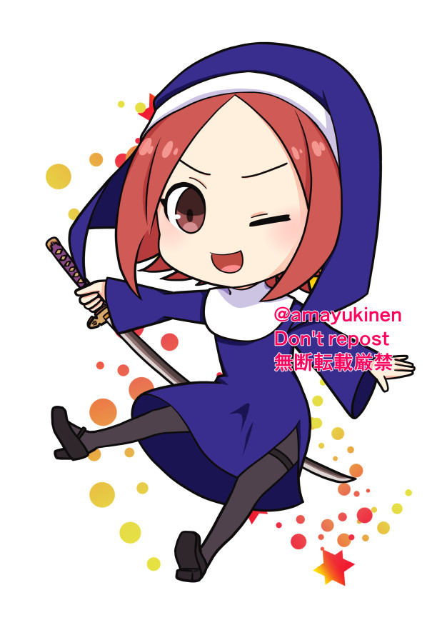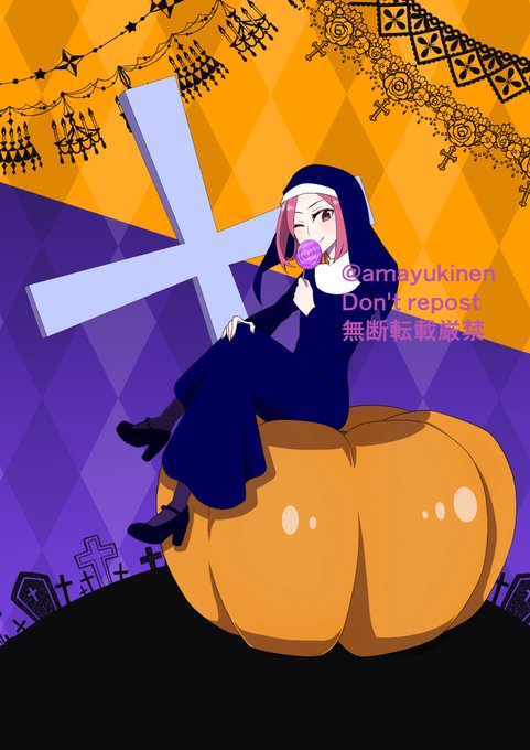 ハッピーハロウィン絵です。上達法0巡目の赤髪っ子を描きたいという気持ちとシスターコスを描きたいという気持ちがバトった結果、仲良く融合しました。 #神無世界の日常 #探偵部 #創作イラスト