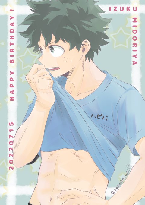 お誕生日おめでとう🎂🎉 可愛くてかっこいいデクくんを永遠に見ていたいよー🥦 お腹を描きたかったので、Tシャツ姿にしました😇✨ お誕生日絵にしては味気ないけど💦 #緑谷出久誕生祭2022 #緑谷出久生誕祭2022