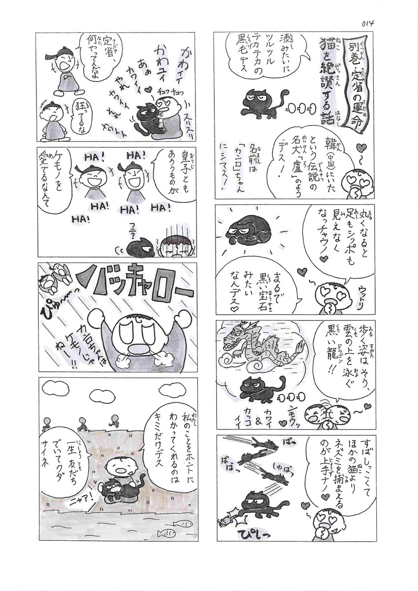 小学生から歴史オンチの大人まで!学問の神チャン菅原道真 『ポレポレ天神★ショートショート』 ■別巻・定省の運命(さだみのさだめ)③ 猫を絶賛する話[014] #漫画が読めるハッシュタグ #黒猫 【↓ 解説はリプ欄】