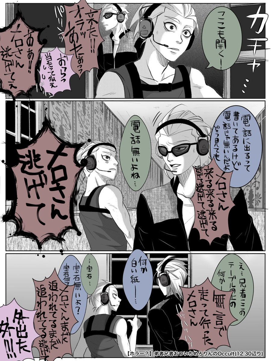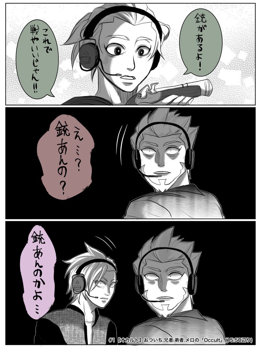 gs4のオカルとが最高に良。特に弟さんと狂犬さんの2人行動が個人的に笑顔不可避。 1枚目『2.2になりたくない狂犬さん』 2枚目『何やらとても騒がしい暖色組と全く気にしない寒色組』 3枚目『急なスナイパーモード(なお銃は使えない模様)』