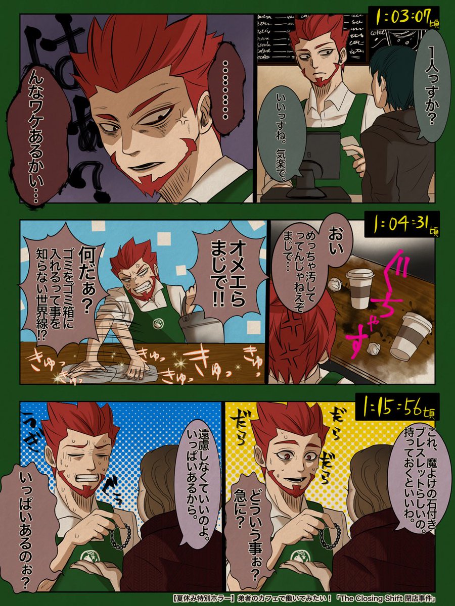33 534 オトカフェ最高でした。ホラー部分も不気味でめっちゃ良いけど、カフェ店員タイムもとても良い。空腹に耐え、散らかされ放題のテーブルを掃除し、変なお客の相手もこなしながらペチーノを作る。お疲れ様でした。 22/08/14 17:20