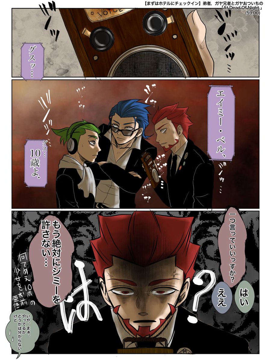 51 602 ジミーホテルからお気に入り場面3つ。 ①三つ星だと思ってないので滅茶苦茶言う兄ズ。 ②クローゼットを覗かれ『あ゛ー!』なゲリラ組とひたすら落ち着いてる兄。 ③霊体が子供だと分かってジミー絶対許さないマンになる優しい弟さん。 22/10/06 19:07