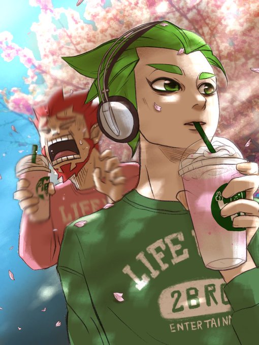 42 662 桜のフラペチ。全然いける先生と、 香りが凄くて顔面に花びらブワーーーーっみたいになってしまう弟さん。 (ぶろらじ164) 23/04/05 19:26