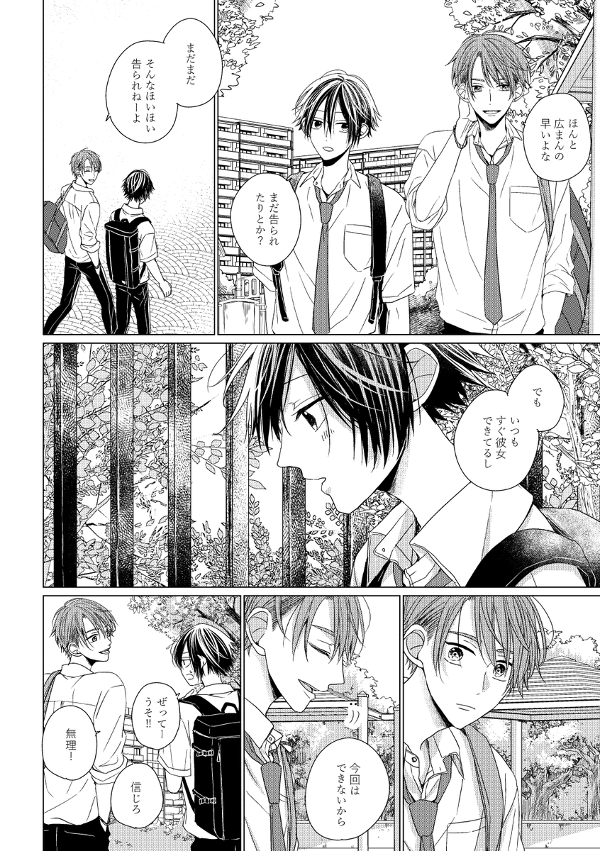 0 7 幼馴染とは友達でいたい攻めと幼馴染のことを好きになってしまった受けの話(1/12) #蓮司ーめぐむ #創作BL 23/08/10 16:35