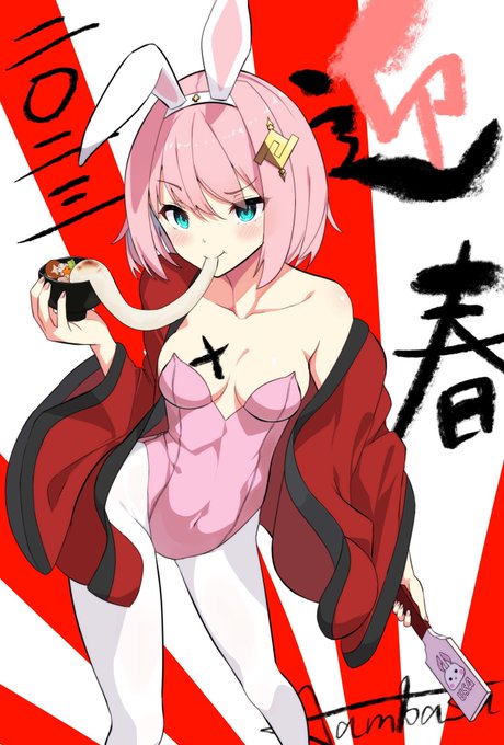 #パス味美術館 お正月に描いたうちの子に続き、塗りの実験がてらにアンバサちゃんのバニーも描いてみました。 花札描くの大変で途中で力尽きましたが…😅