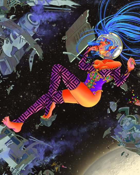 Playful Tragedy This is the last of 4 artworks I will be dropping tomorrow, Halloween with @niftygateway 3:30 pm or 6:30pm EST ! This is my 1/1 inspired by an alien girl not knowing she is playing in a horrible wreckage. #waifugang #NFTCommunity #NFTartist