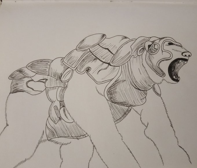 #inktober2020 day 14: "Armor" ✨✨ Iorek Byrnison - The Golden Compass ✨✨ #inktober #inktoberarmor #armor #thegoldencompass #labussoladoro #questeoscurematerie #philippullman #iorekbyrnison #sketchbook #sketch #drawing #sketchbookdrawing #fanart #ink #blackcatdraws