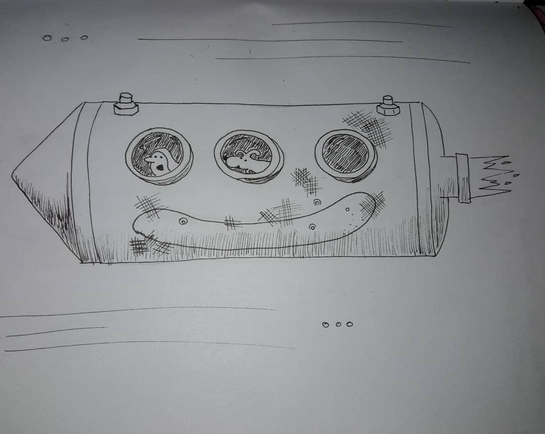 #inktober2020 day 16: "Rocket" 🚀🚀 For this prompt a fan art of Samorost ✨✨ #inktober #inktoberrocket #rocket #fanart #samorost #amanitadesign #ink #inkdrawing #inkillustration #inksketch #sketchbook #sketchbookdrawing #videogames #pointandclick #blackandwhite #blackcatdraws