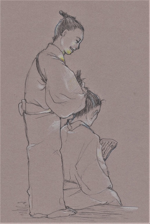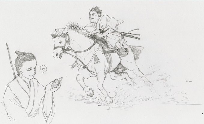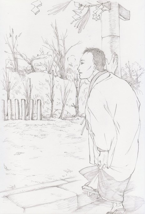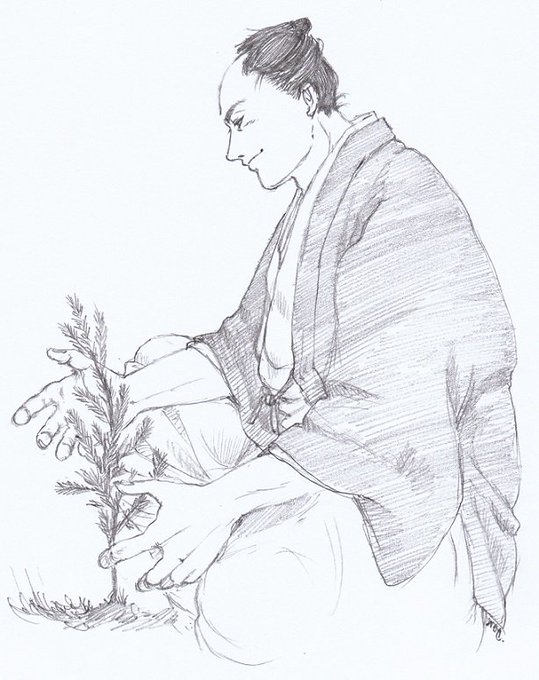 #触りたくなる髪の絵を見せて 土佐藩士の諏訪重中さんが描いたと言われる「梅屋敷事件」の絵巻物に描かれた久坂玄瑞さんの髪型のインパクトにたまらず描いてしまった久坂さん。 坊主頭から髷を結うまでの過程を考えたら確かにそうなんだけども!わかってるけれども! 記録に感謝感激😆