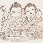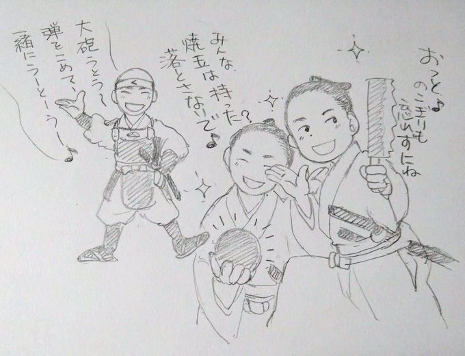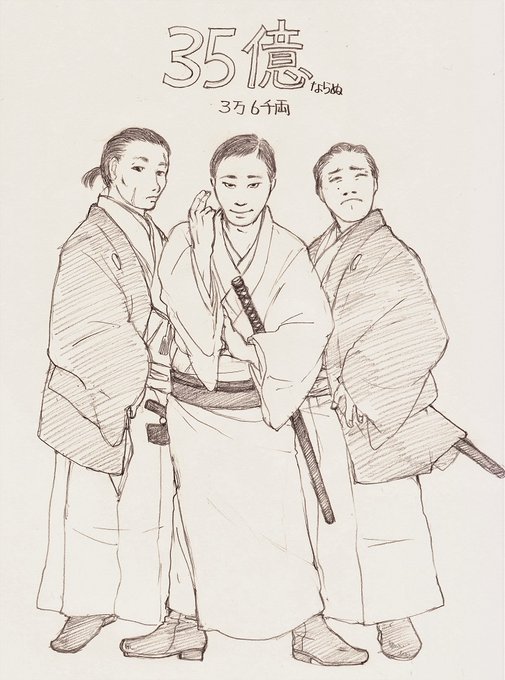 こちらも昨日の続き。 ブルゾン晋作with御神酒徳利※伊藤さんはちょっと正気(唐突に描いてみたくなり) 井上馨さん&伊藤俊輔さんはコンビでも。 ♪そんなグズグズしている間に船は売れて行っちゃうのよ、一歩踏み出さなきゃ!一体今いくらになっていると思ってるの #歴史上の推しトリオ